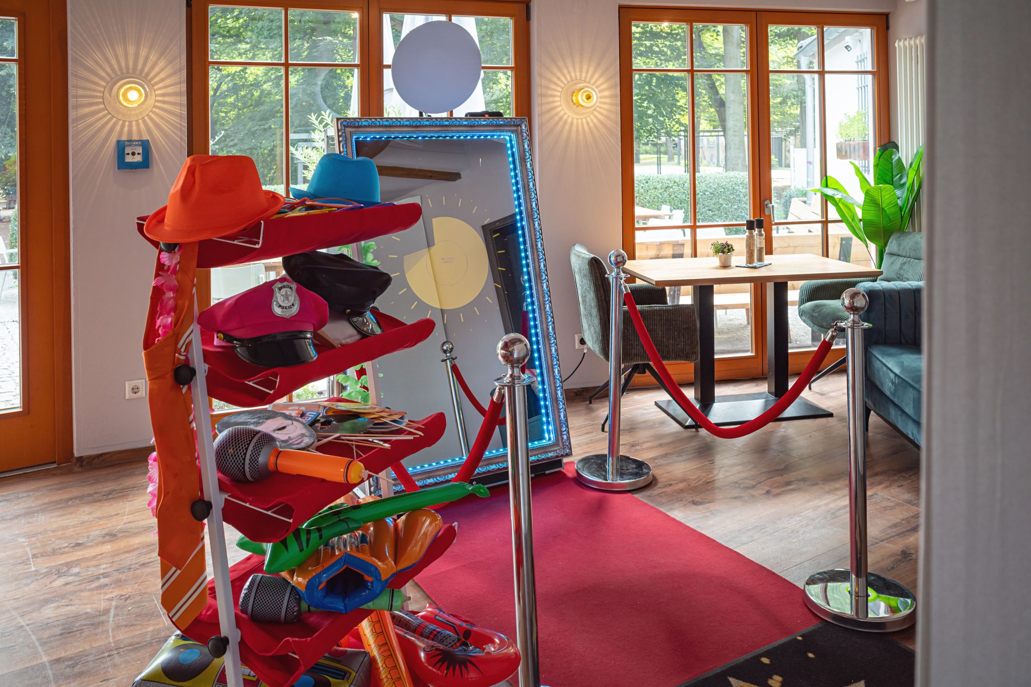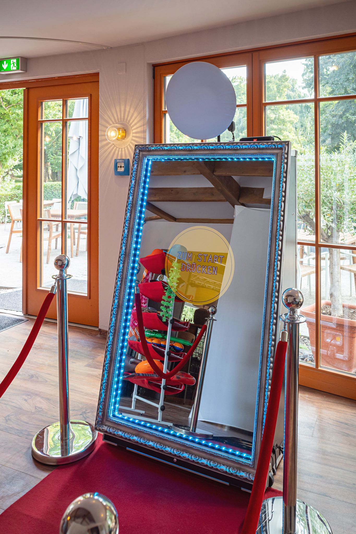 Unsere Fotobox in Form des Fotospiegels sorgte für jede Menge Spaß und Erinnerungen: Die Gäste konnten ihre Bilder nicht nur sofort ausgedruckt mit nach Hause nehmen, sondern auch ganz bequem per QR-Code direkt aufs Handy laden. So waren die schönsten Momente gleich digital verfügbar.